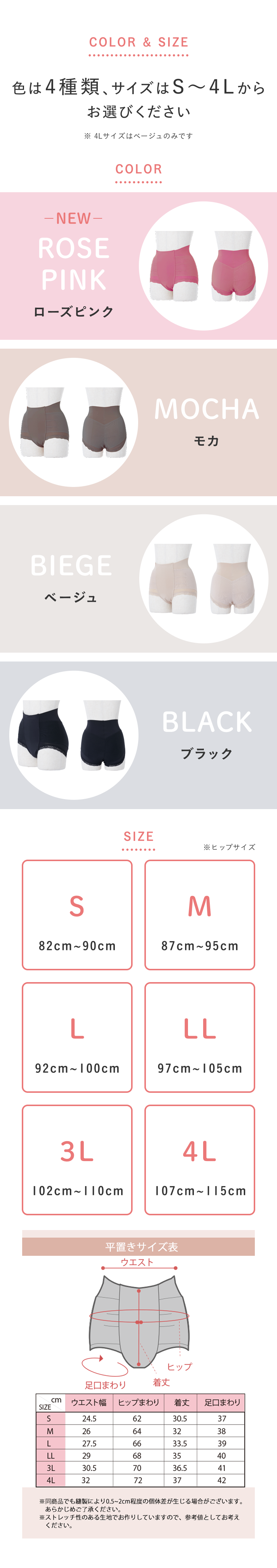 ご好評につき【ブラックLLサイズ】【ベージュLサイズ】【ベージュLLサイズ】【モカLサイズ】【モカLLサイズ】【モカ3Lサイズ】が在庫切れとなっております。