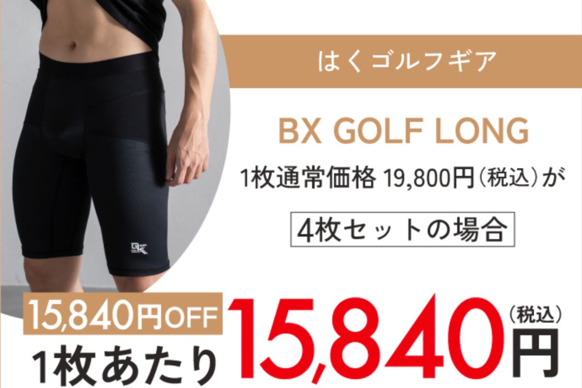 BX GOLFシリーズは、ゴルフをはじめとするスポーツシーンで骨盤・姿勢をサポートするアクティブウェア。見た目はスポーツウェアそのままに、機能は整体レベルというのが特徴です。