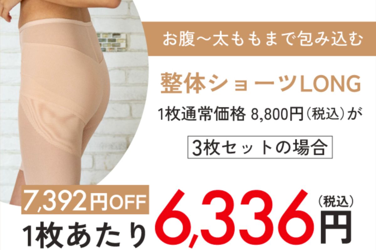 通常の整体ショーツより丈が長く、腰まわり全体をしっかり包んでサポート。より広い範囲のケアを求める方に。