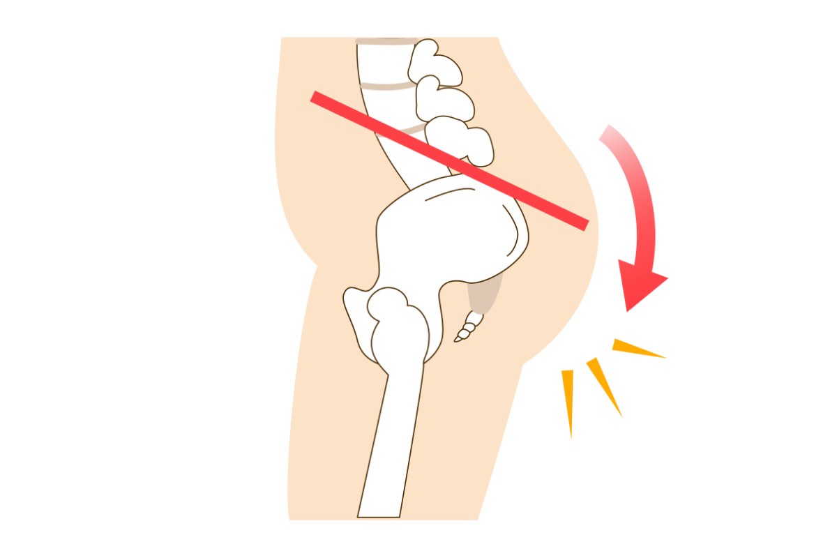 いくつか当てはまる場合、骨盤が後ろに傾いている可能性があります。骨盤が後傾すると、腰の自然なカーブは失われ、背中が丸まりやすくなります。坐骨で座れないのは、骨盤が立っていないサインです。