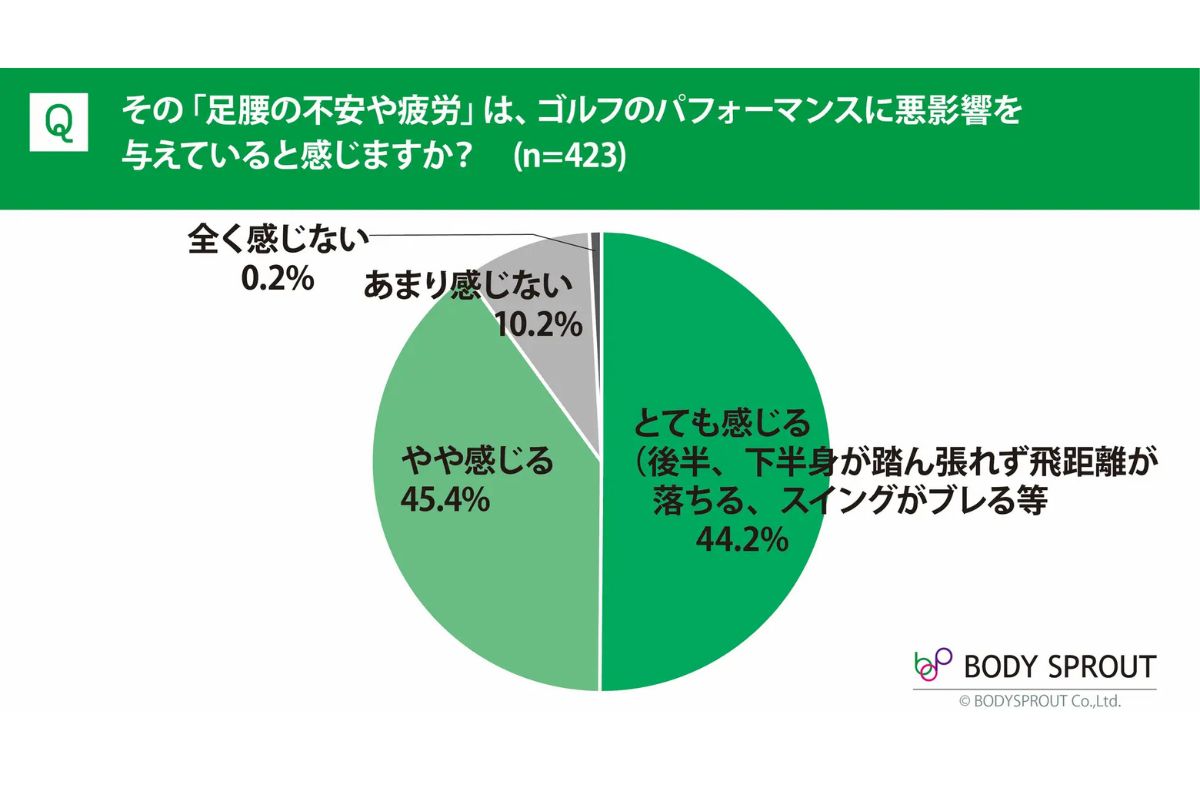 後半にスコアが乱れると答えた人は67.8%。そしてそのうち89.6%が「足腰の不安がパフォーマンスに影響している」と回答しています。つまり、崩れの背景には「足腰の問題」があると考えられます。