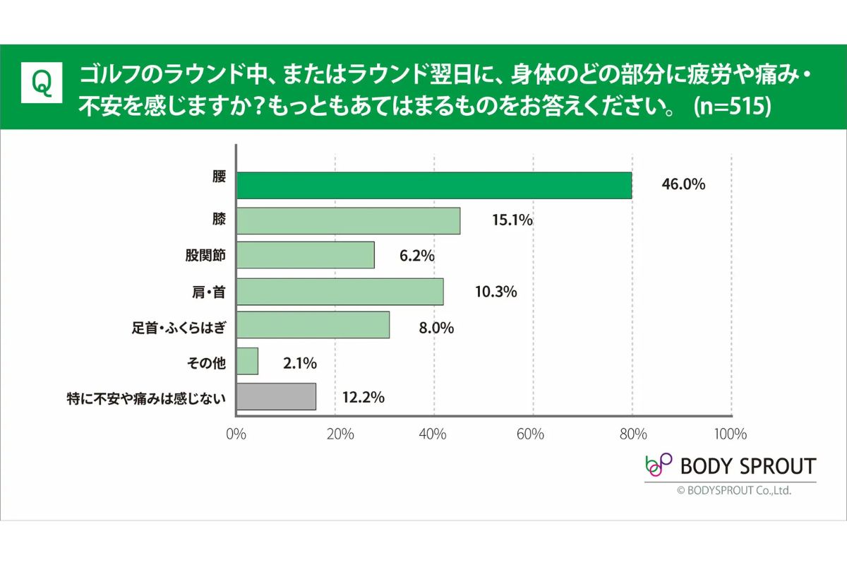 では、具体的に身体のどこに問題があるのか。「ラウンド中や翌日に疲労や不安を感じる部位」を聞いたところ、答えは明確でした。
